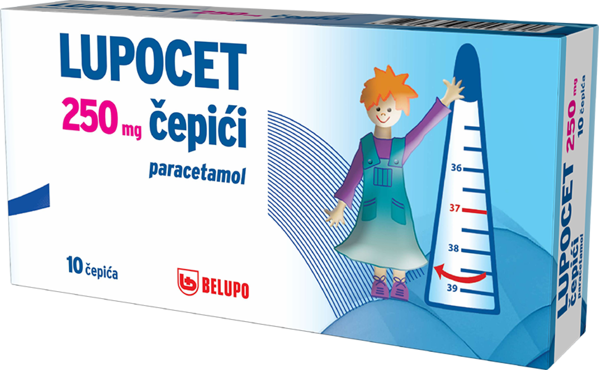 LUPOCET 250 mg čepići primjenjuju se za snižavanje povišene tjelesne temperature koja je povezana s prehladom, gripom, dječjim zaraznim bolestima (npr. vodene kozice, hripavac, ospice, zaušnjaci) ili reakcijom na cijepljenje, kao i za ublažavanje blage do umjerene boli poput boli pri nicanju zuba, zubobolje, glavobolje i grlobolje.